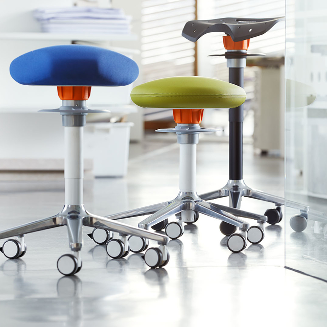 Der er mere end 40 dækvarianter til det ergonomisk buede sæde. Stolen er ideel til en lang række erhverv; i en praksis, sekretariat, reception, laboratorium og til plejeområdet.