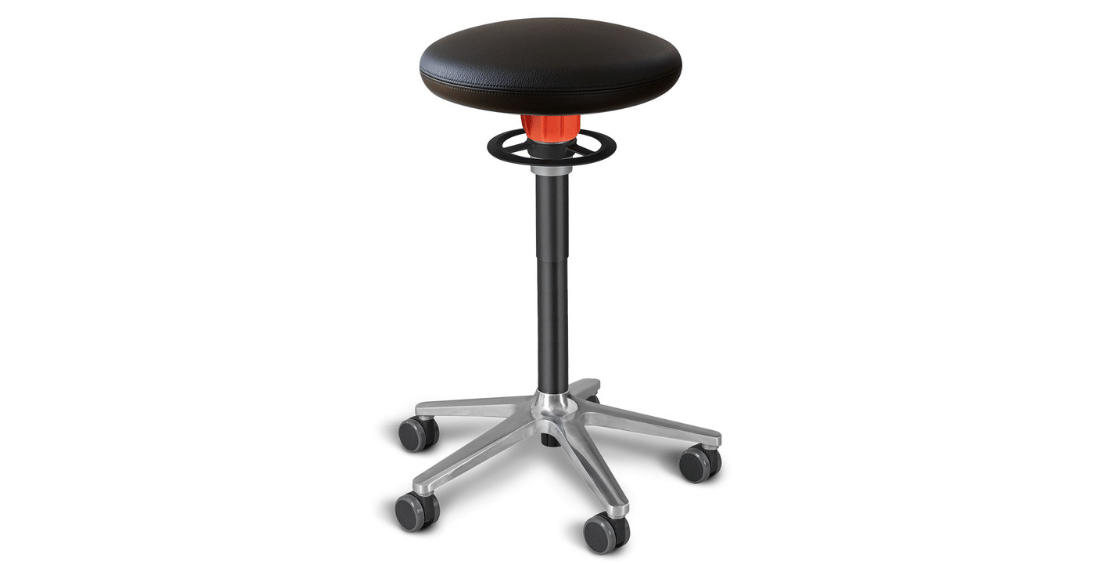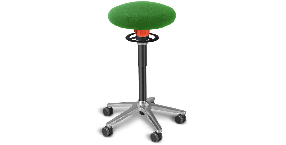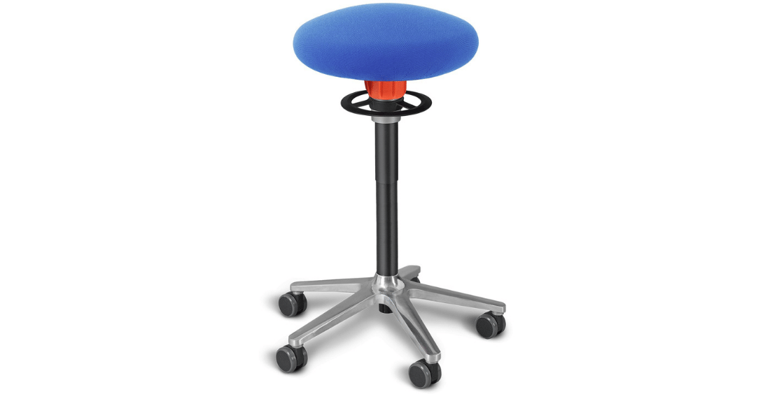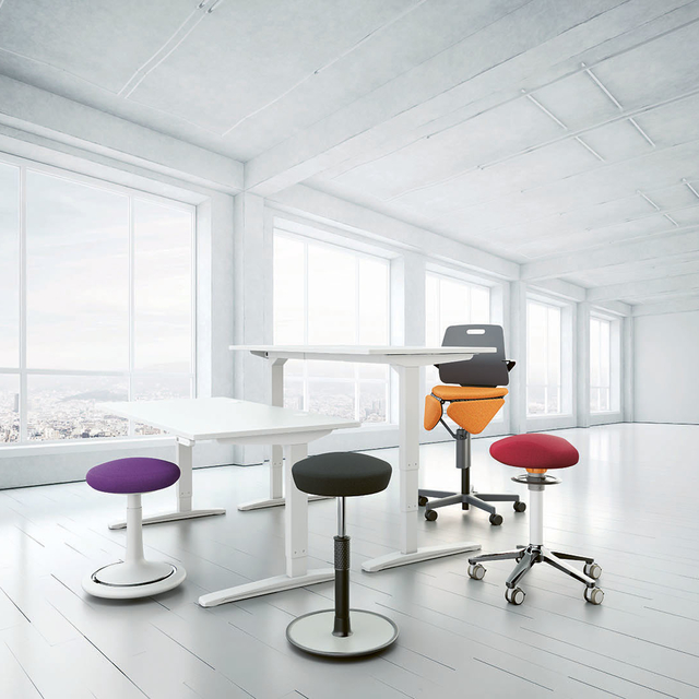 En vekslende siddeposition, sikres af en ergonomisk arbejdsvippestol.