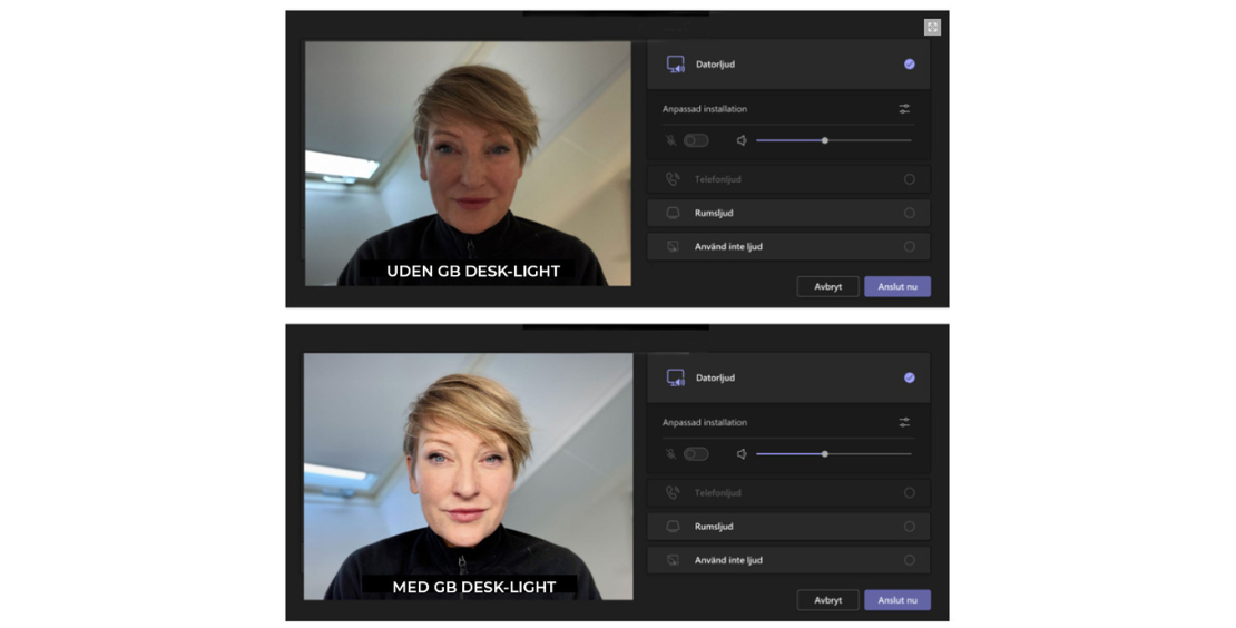 Hvis man holder onlinemøder, kan man nemt anvende lampen, til at forstærke lyset ved at vinkle den aflange lyskilde opad. Det øger lysstyrken og kontrasten, så man får et bedre billede på møderne.