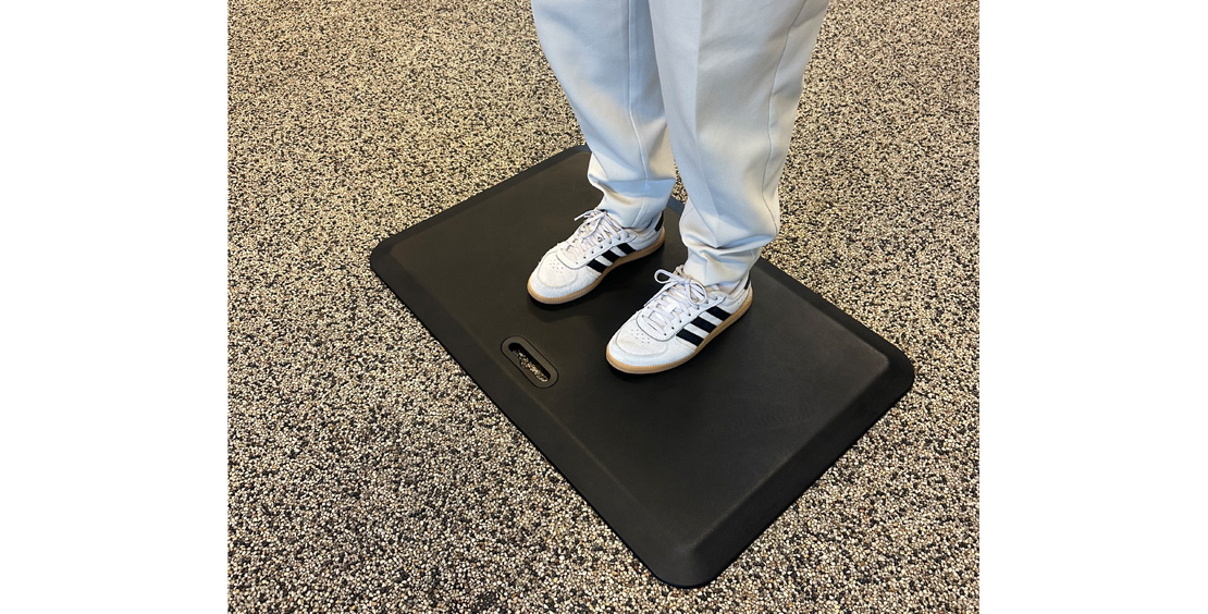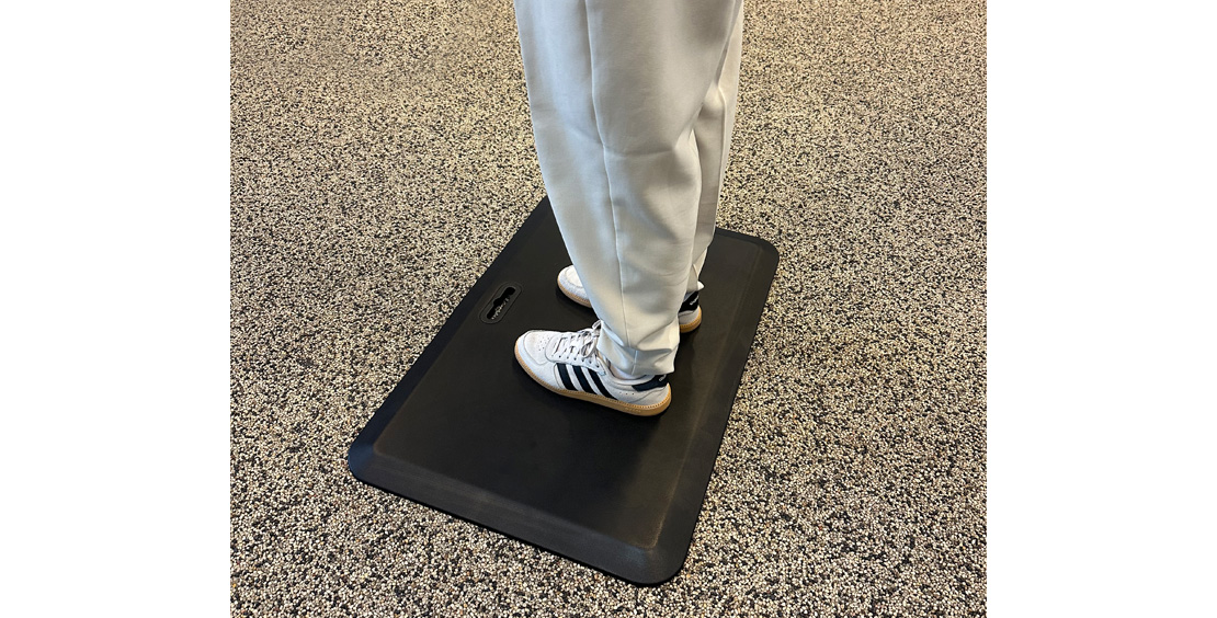 Vores kroppe har bedst af at veksle mellem at sidde og at stå i løbet af arbejdsdagen. Ved stillestående arbejde belastes vores led og muskler i ryg, lænd, ben og fødder. Musklerne trækker sig sammen og blodgennemstrømningen mindskes. De stivner og vi får ondt. Aflastningsmåtten opmuntrer til at stå og man kan stå meget længere idet den fremtvinger små mikrobevægelser så musklerne i ryg, ben, ankler og fødder hele tiden tvinges til at arbejde og stimulerer blodcirkulationen. En øget blodcirkulation forebygger og lindrer problemer med hårde og ømme muskler.
