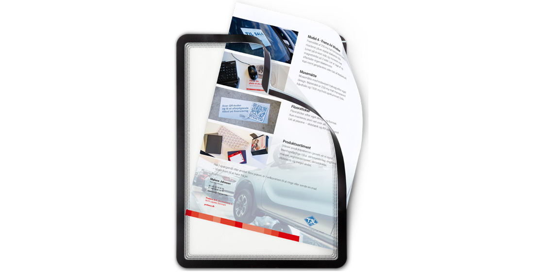 GB INFORAMMER er fremstillet af reflex-fri hårdfolie og selvklæbende folie, monteret med magnetlukning på 3 sider.