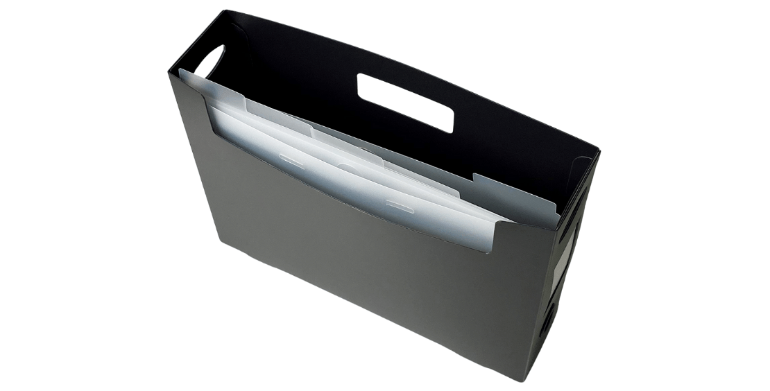 Vores GB organizer boks har et praktisk håndtag, så du nemt kan tage den med dig, eller sætte den hen på reolen. Den indeholder 10 indeks, der hver især fungerer både som en inddeling og en mappe og kan indeholde ca. 150 stk papir. De unikke udskæringer i hvert indeks gør bl.a. at papirer kan sættes fast så man kan bladre. Samtidigt har hvert indeks forskudte faner, så man har et godt overblik, når de står i kassen.