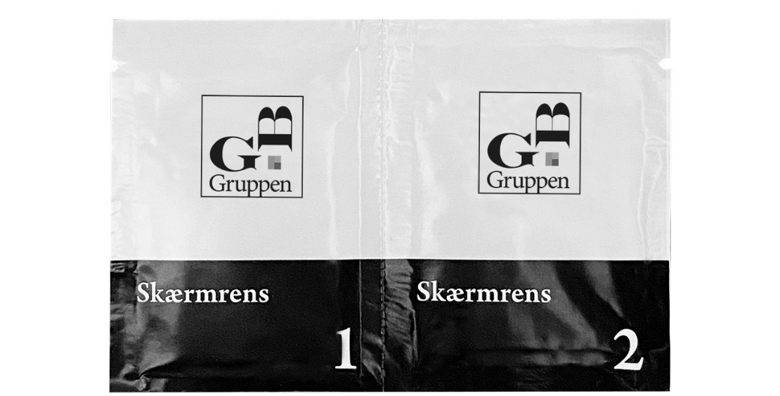 4) Brug pakning nr. 2, hvilket er en microfiber baseret klud. Aftør/polér rundt på skærmen I cirkler indtil området er helt tørt. På denne måde optager microfiber kluden alt skidt og fedt, så man undgår streger på skærmen.