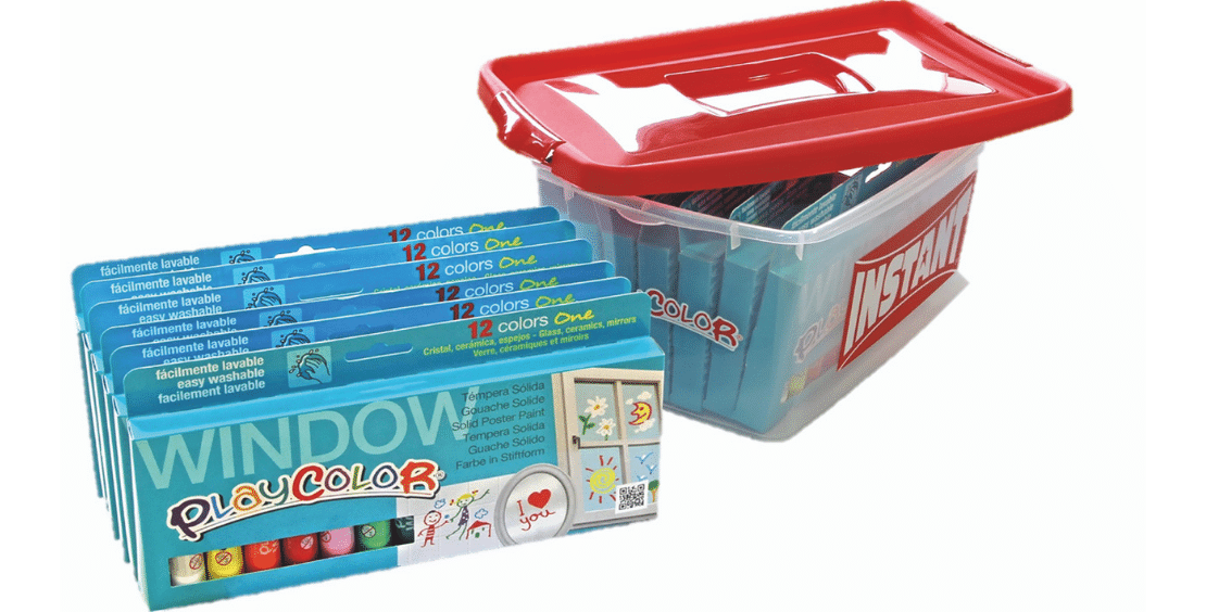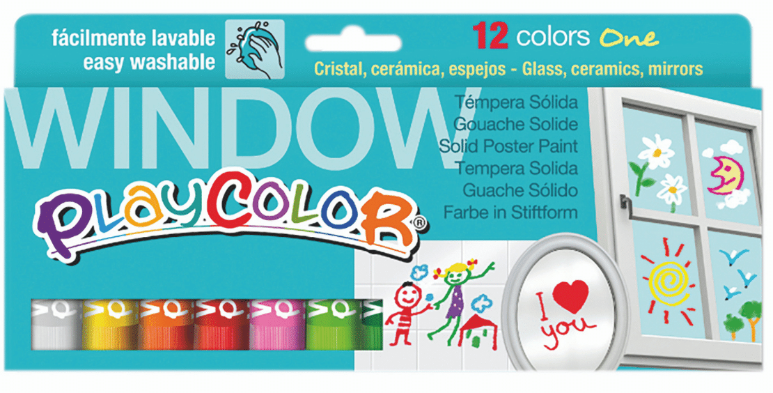 GB Windows paint box indholder 72 enheder á 10g i 12 forskellige farver. De er specielt udviklet til institutioner og skoler. Farverne bliver ikke blandet og man kan derfor tegne henover farverne.