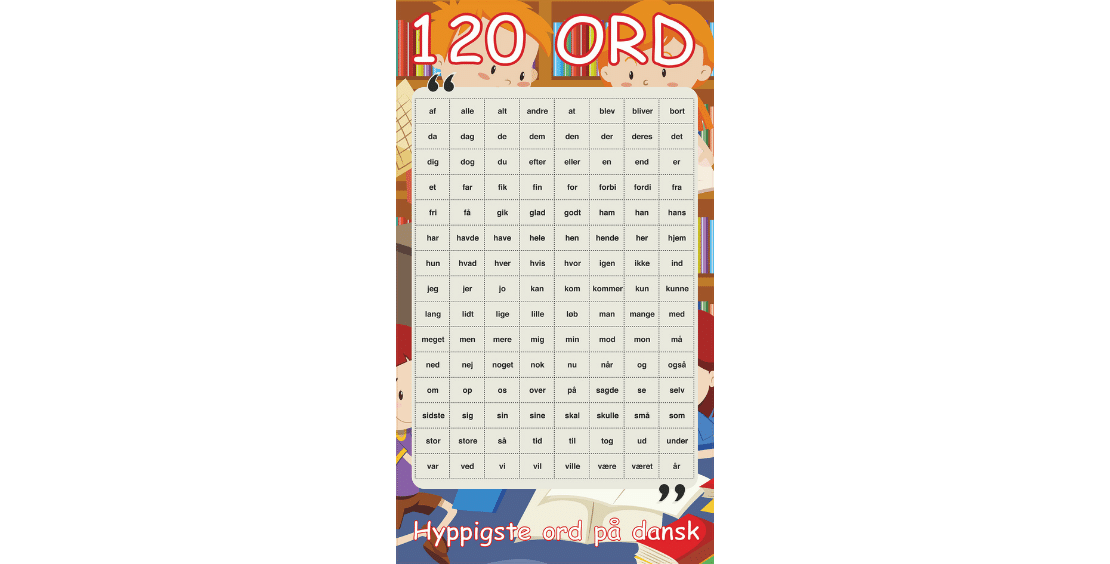 under - Men laver man indlæringen af de “120 ord” om til et spil/leg, er det straks en anden sag. Det er vigtigt, at børnene lærer ordene gennem alle sanser, hvor også bevægelse og leg kommer i spil.