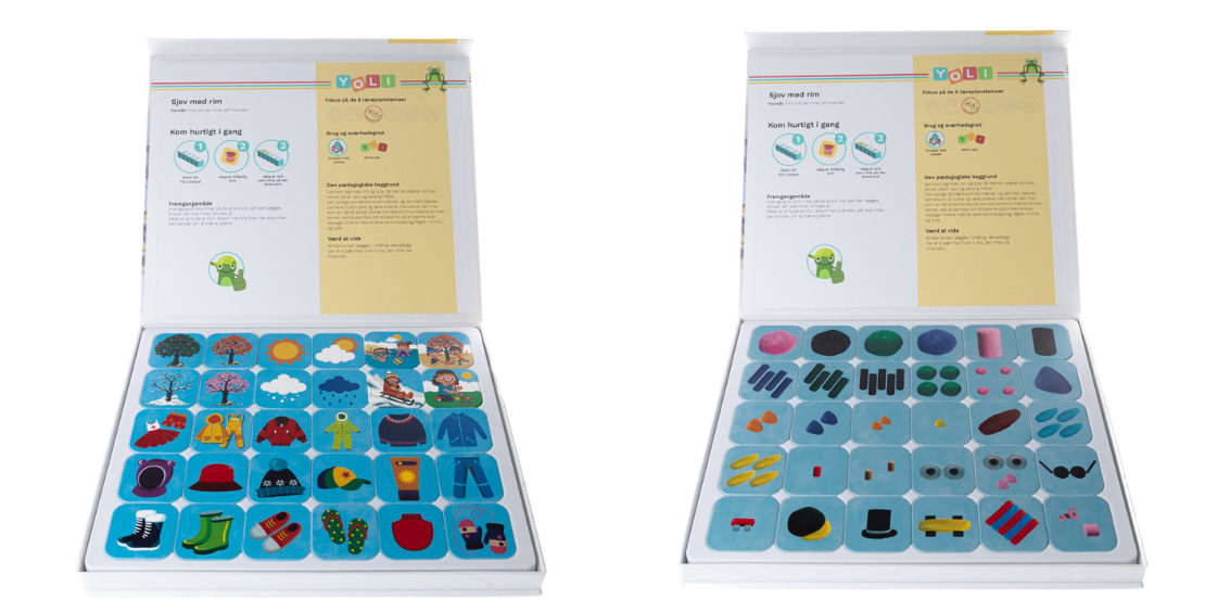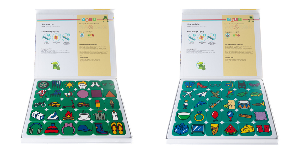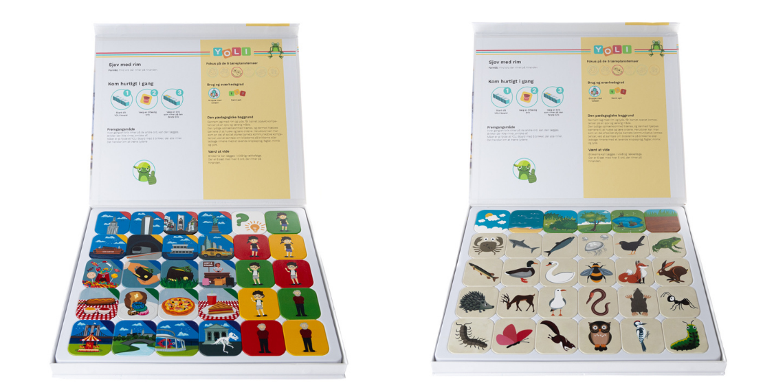 YOLI byder på masser af forskellige spilmuligheder – fra begrebsspil til huskespil og quizzer. Børnene kan spille selv uden voksendeltagelse – eller spillet kan være en voksenstyret aktivitet, som udfordrer børnenes fantasi, leg og læring på nye måder.