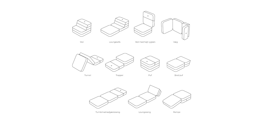 De ikoniske folde- og tumlemøbler indbyder til bevægelse, kreativ leg og nærvær. Hvert produkt er gennemtænkt ned til mindste detalje, så det både stimulerer børns motorik og giver et funktionelt designmøbel, der kan bruges i mange år.