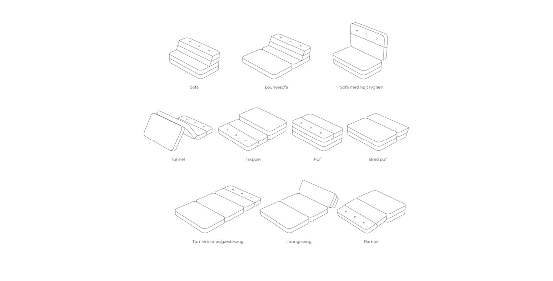 Møbler og produkter til legetid og hyggetid. Fleksibel ramme om leg, nærvær og æstetik.