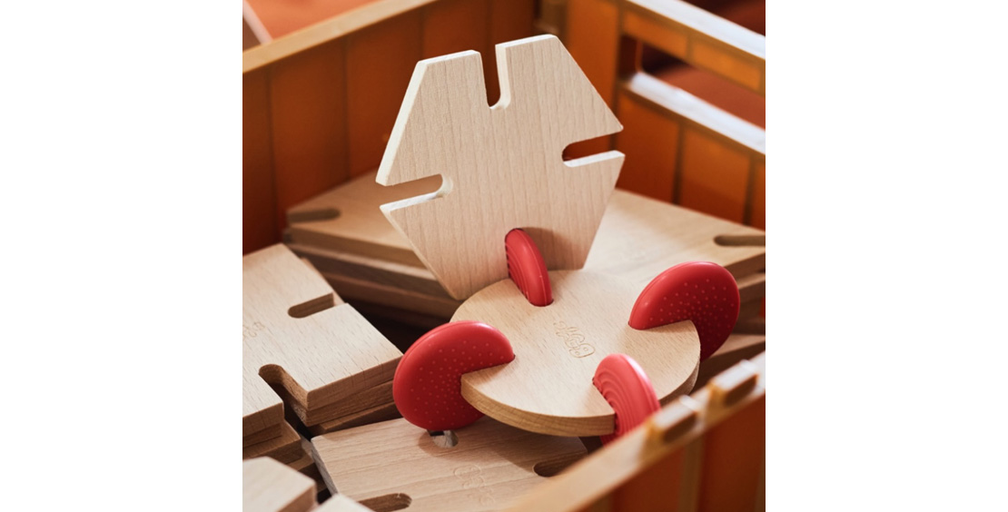 GB KONSTRUKTIONSLEG er multifunktionelle, sensoriske, designerbyggeklodser. Det giver en unik måde at engagere børn i en læringskultur gennem kreativ leg. Byggeklodserne er lavet af massivt træ og kommer med sensoriske silikoneforbindelser.