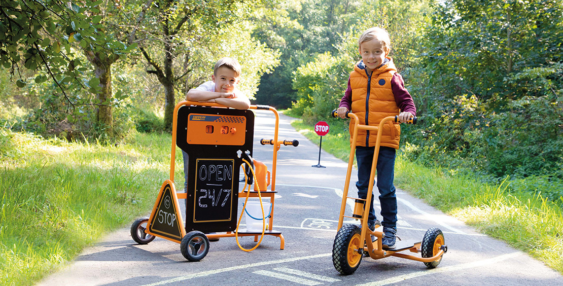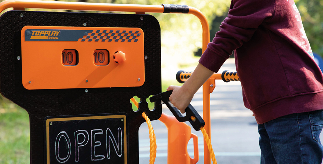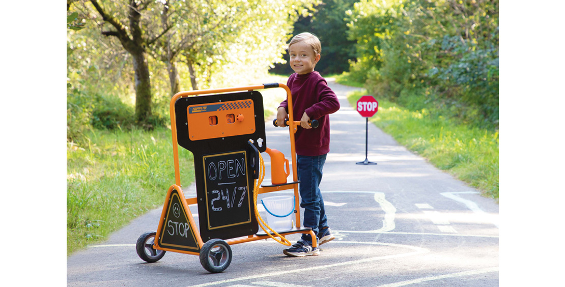 Takket være de praktiske hjul er tankstationen nem at flytte rundt på og kan tages med derhen, hvor legen foregår – både i haven, på legepladsen eller andre udendørs områder.