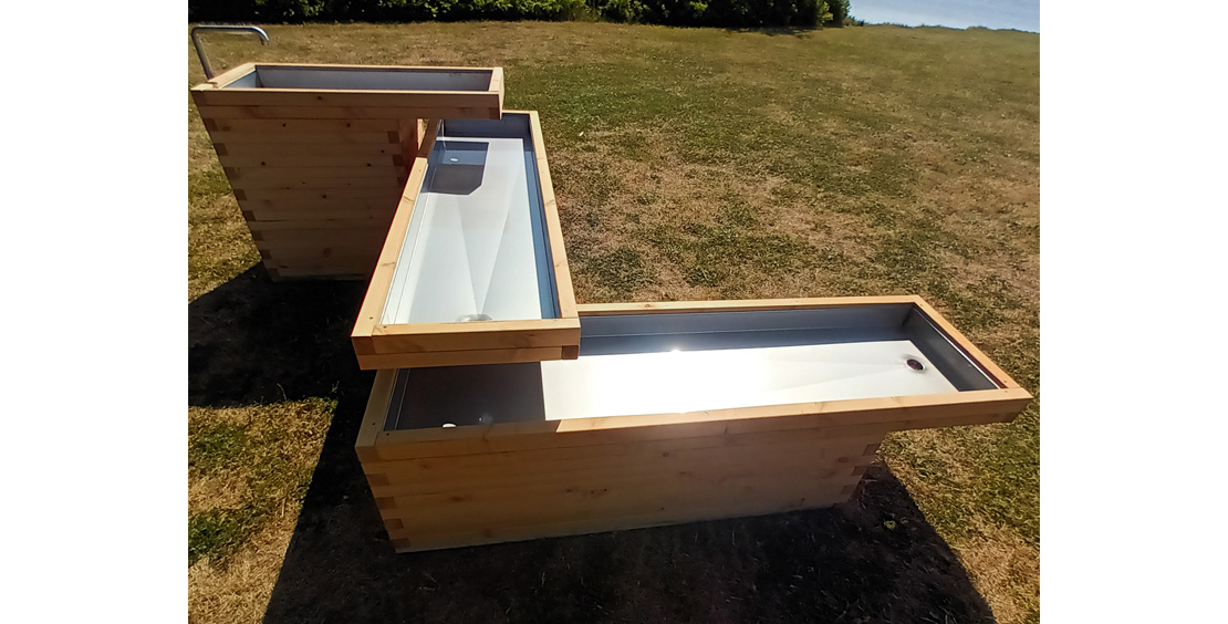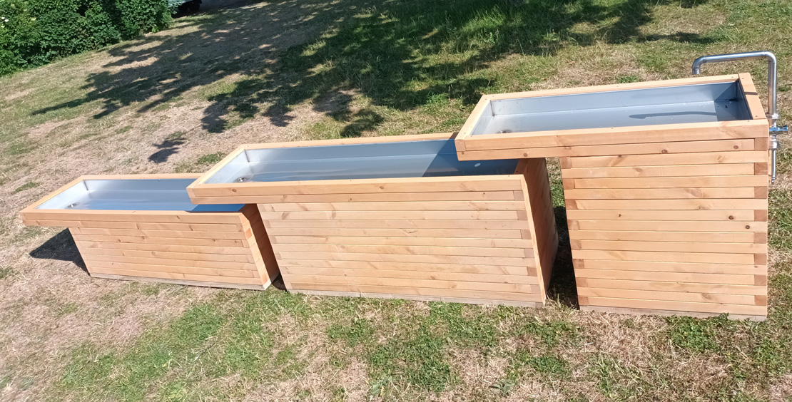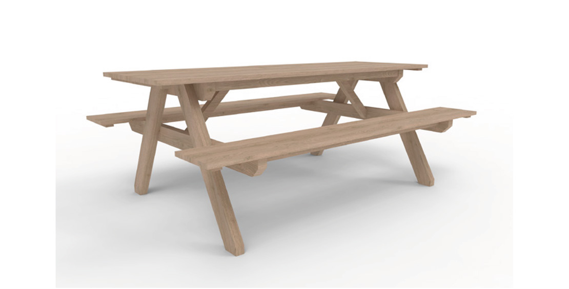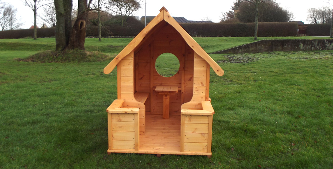 Alt er produceret i slidstærke materialer med træ fra bl.a. Sverige, der kan modstå både intensiv brug og skiftende vejrforhold.